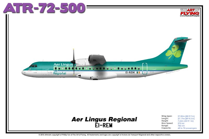 The ATR 72 is a twin-engine turboprop, short-haul regional airliner developed and produced in France and Italy by aircraft manufacturer ATR. The number "72" in its name is derived from the aircraft's typical standard seating capacity of 72 passengers. The ATR 72 has also been used as a corporate transport, cargo aircraft, and maritime patrol aircraft.